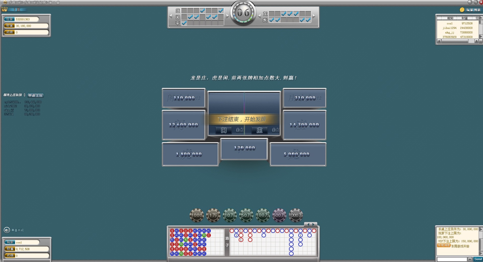 若有玩家或庄家断线,则游戏继续按照正常游戏行,也按照正常结束进行结算。