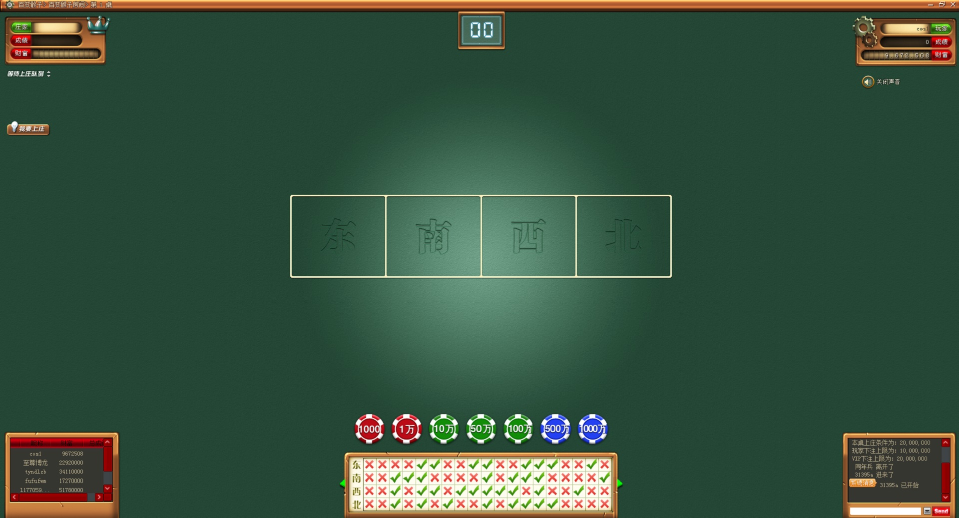 玩家下注最大额会根据每个房间的配置不同而不同。